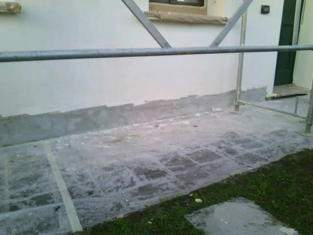 La formazione di una forte umidità di risalita compromette la muratura in tutto il perimetro esterno, che presenta rigonfiamenti, distacco delle finiture e degli intonaci e la comparsa di muffe.