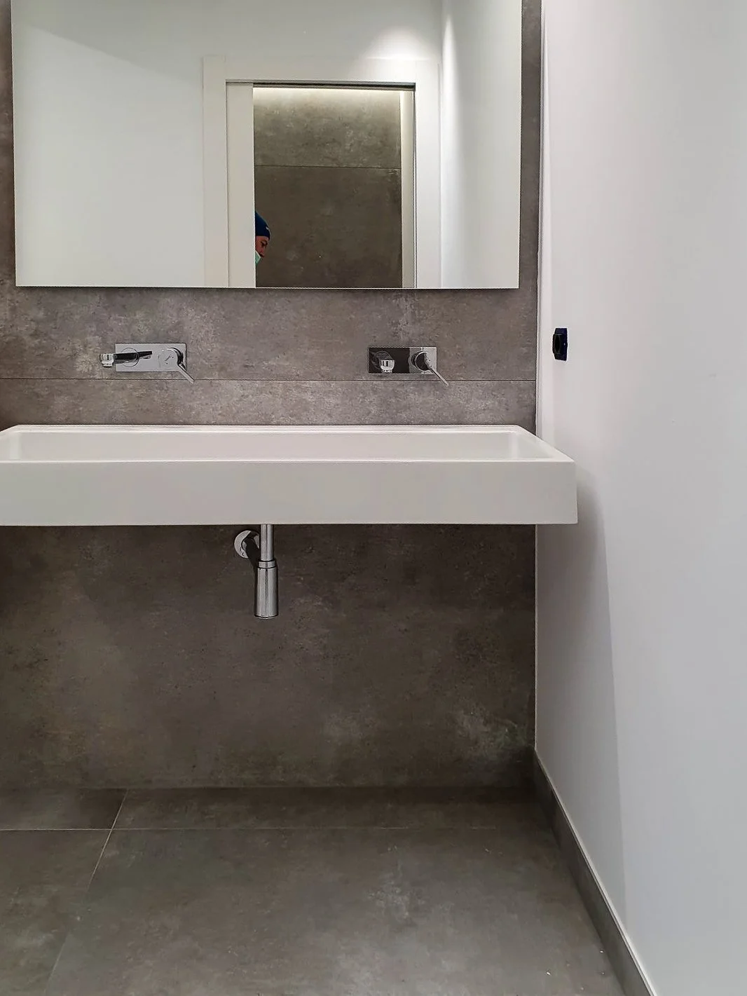 I bagni sono completati con la finitura delle pareti in cartongesso.