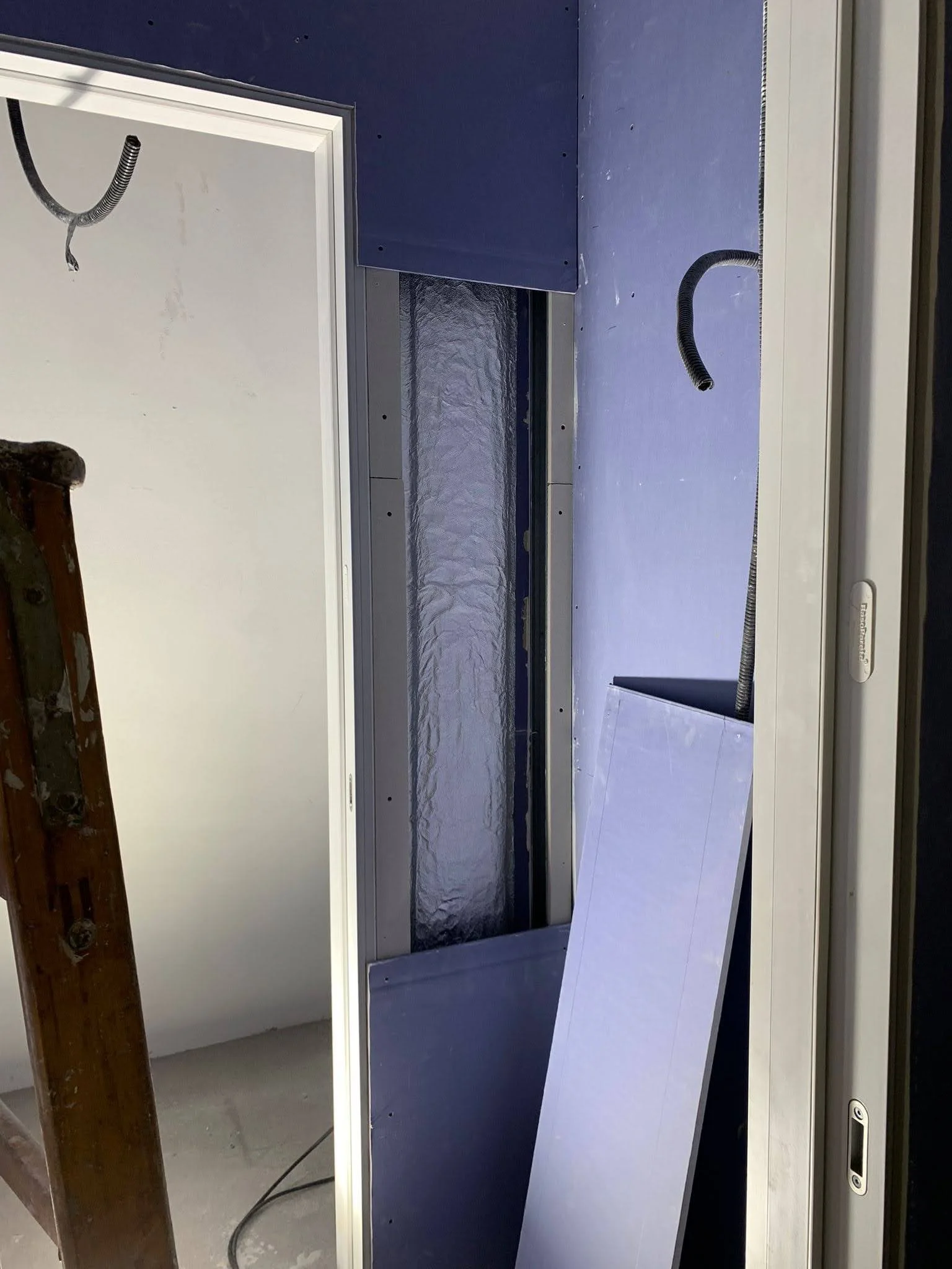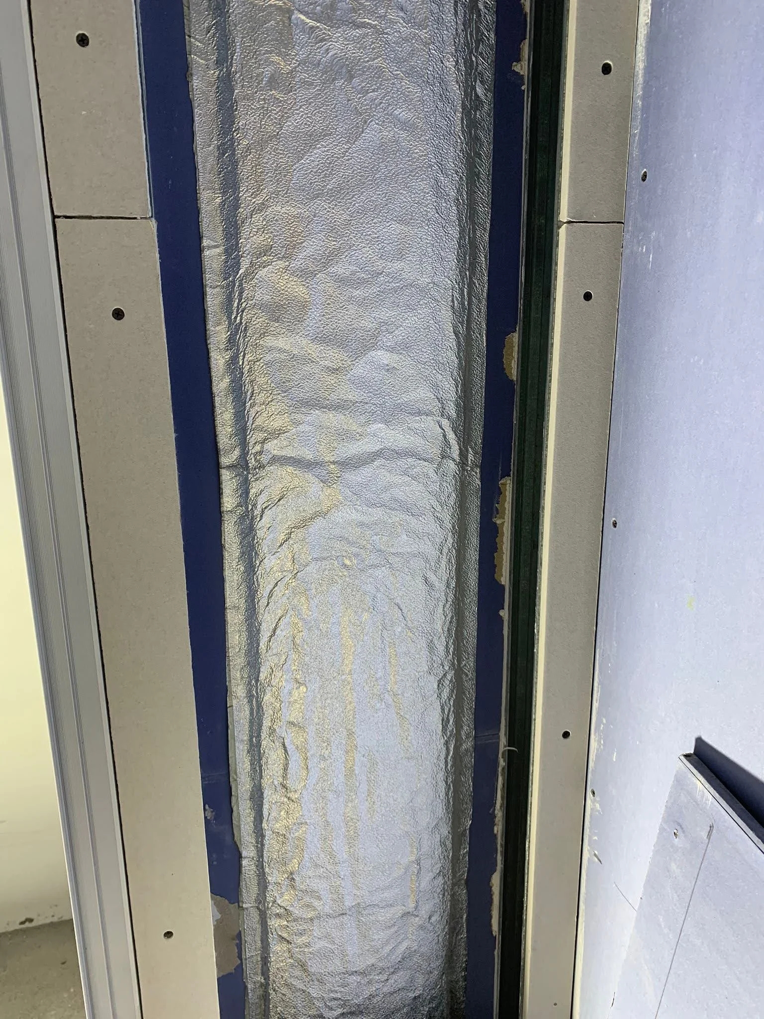 Sistema retro cartongesso invisibile, applicato sul retro delle lastre in aderenza.
