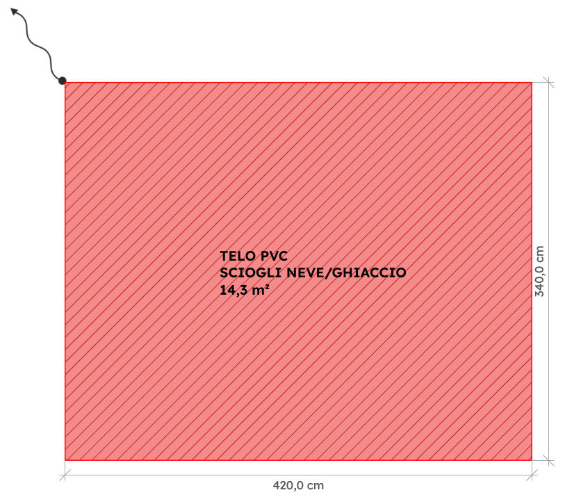 Per la pavimentazione è stato realizzato un telo sghiacciante in PVC su misura che si adattasse perfettamente all’area esterna interessata.